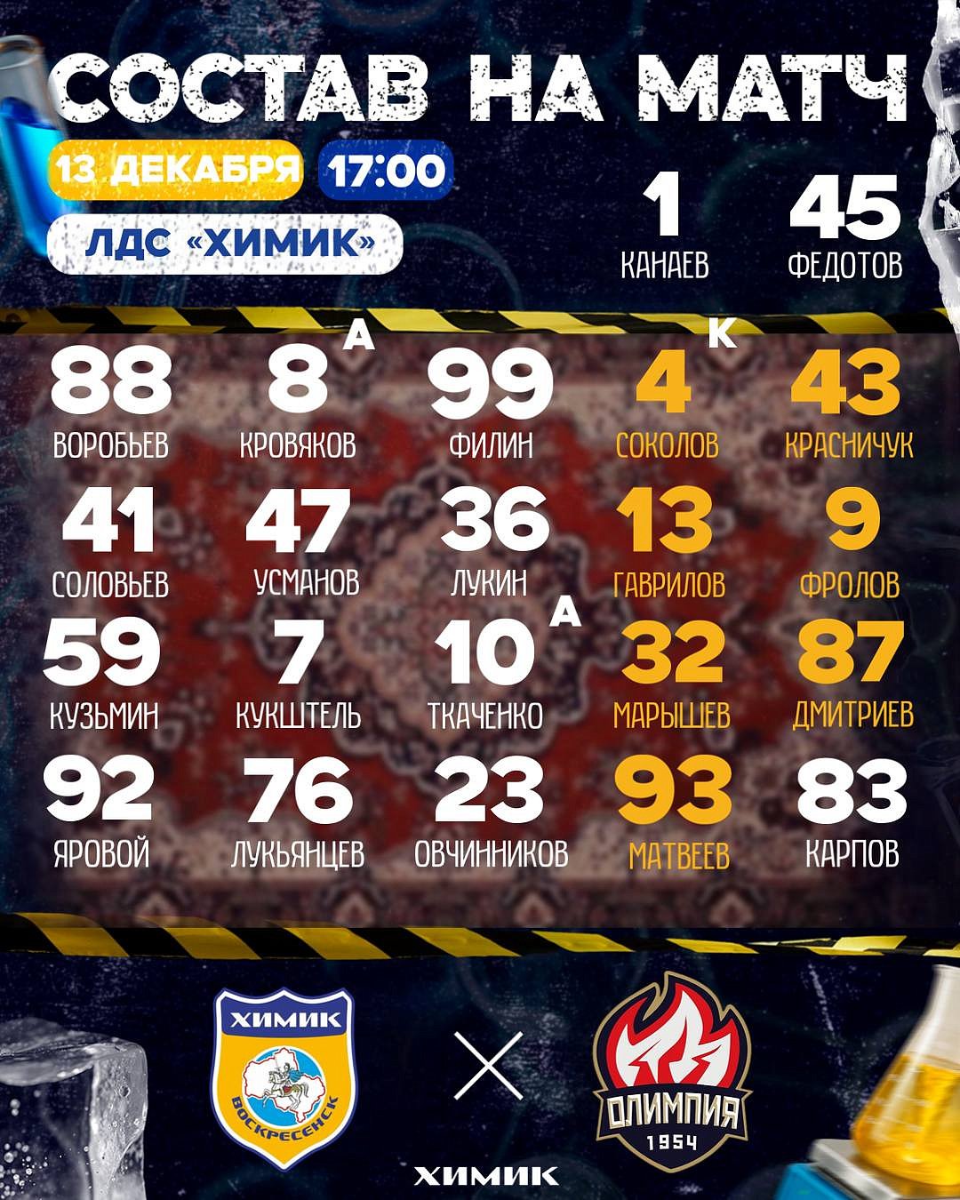 Встречайте стартовую пятёрка воскресенского «Химика».