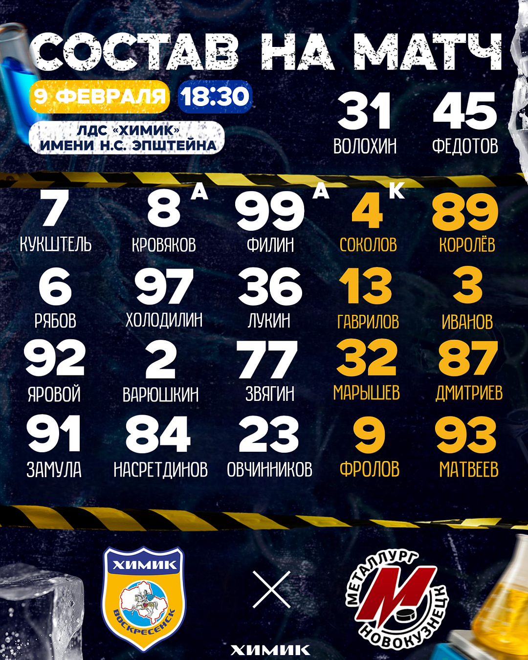Никита Холодилин по-прежнему центр второго звена, на флангах изменения – левый занимает Иван Рябов, правый – Константин Лукин. В паре с Ильёй Гавриловым сегодня взаимодействует Даниил Иванов.